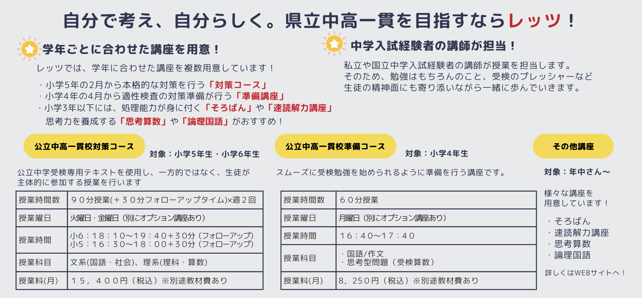 - 新小5・6生向け「県立中高一貫校対策コース」