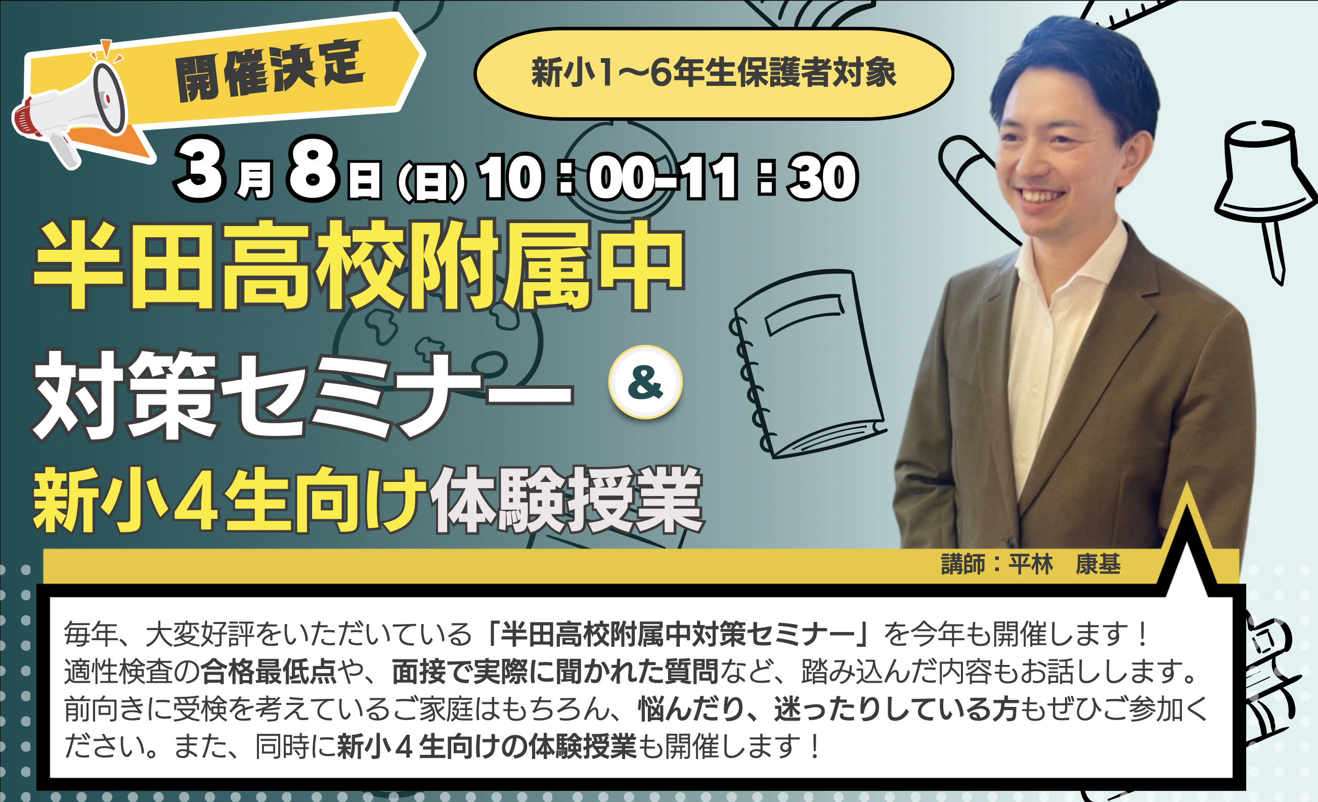 【2026年】半田高校附属中対策セミナー&新小4生向け体験授業開催!