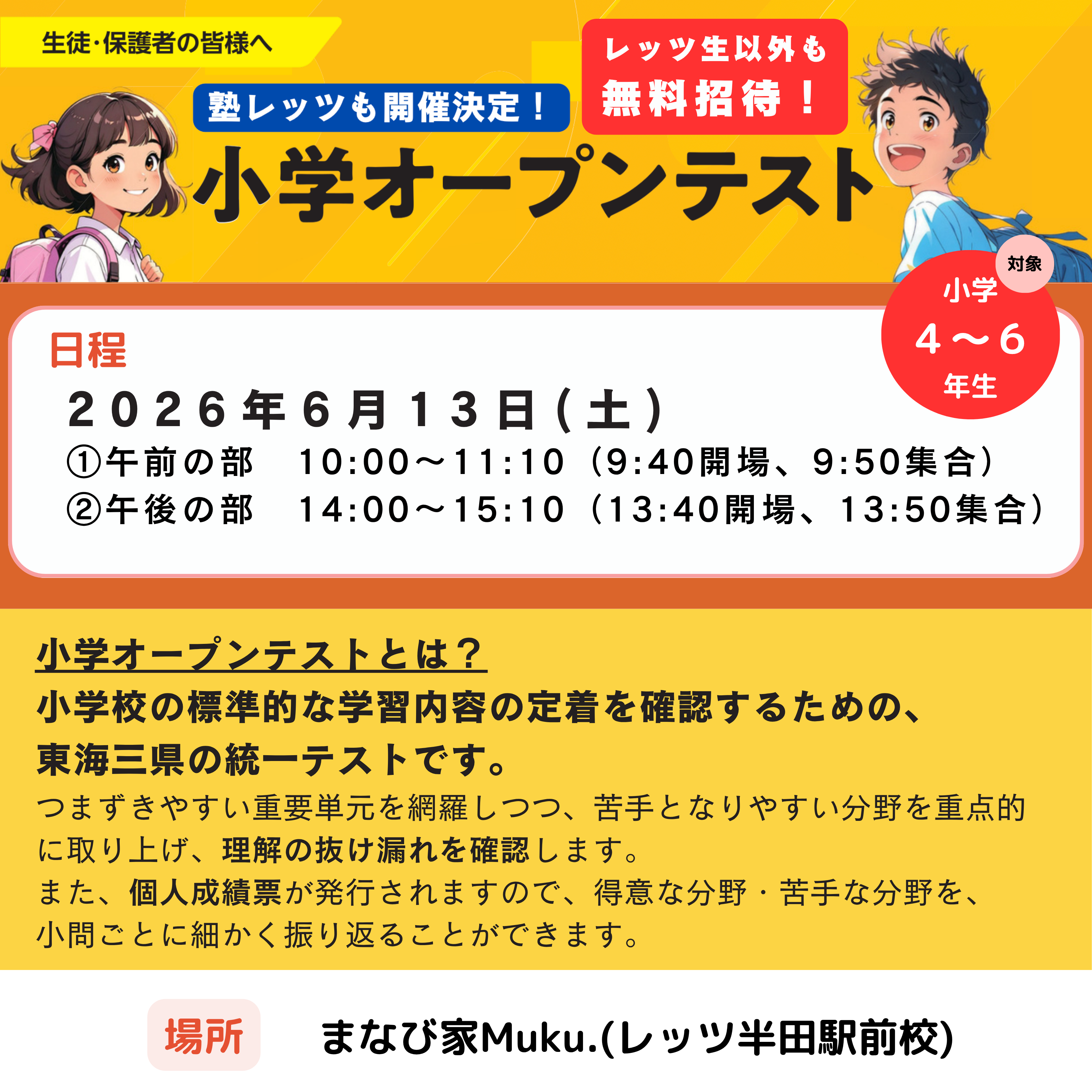 レッツ生は所属校舎で返却します。外部の方は塾レッツ半田駅前校まで取りにお越し下さい。
